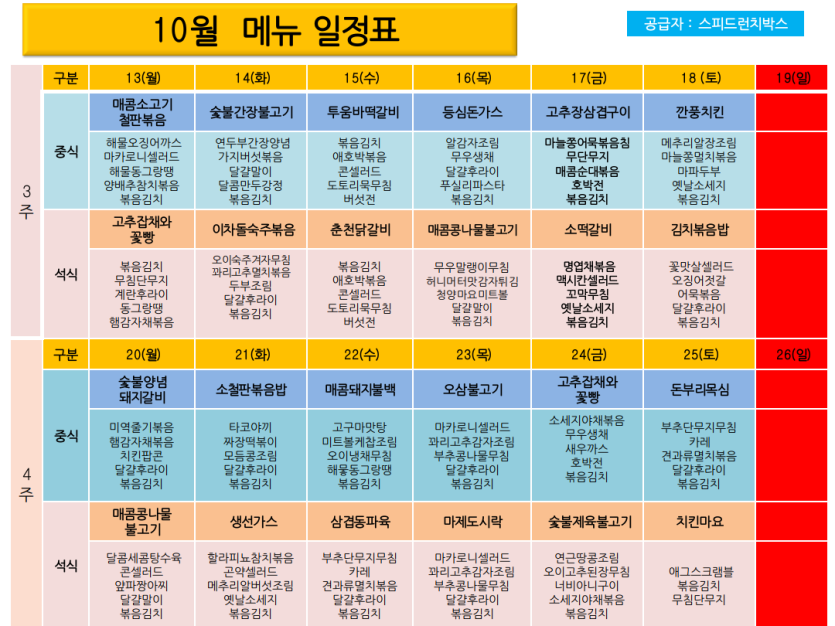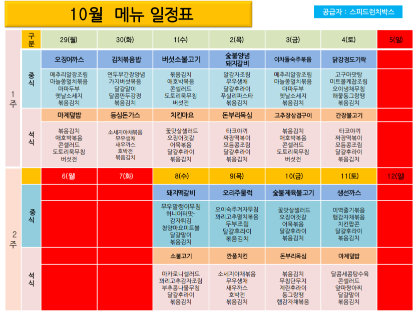 10월 식단표 입니다 > 메뉴안내(다음주메뉴)