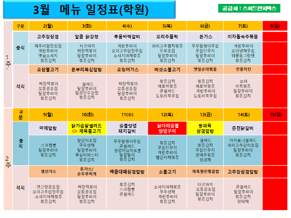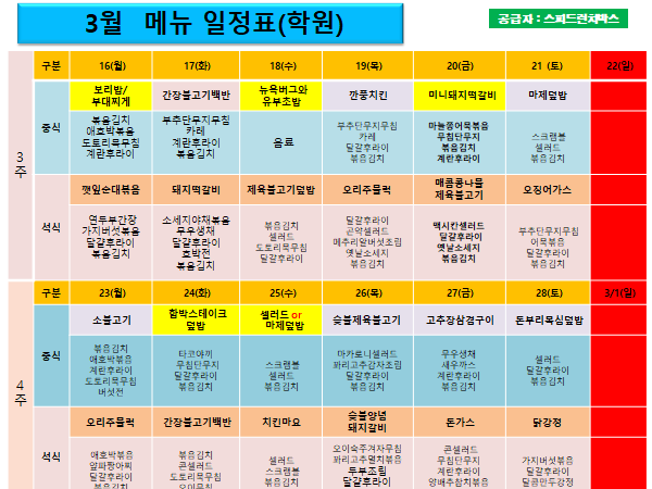 3월 학원용 도시락 입니다 > 메뉴안내(다음주메뉴)