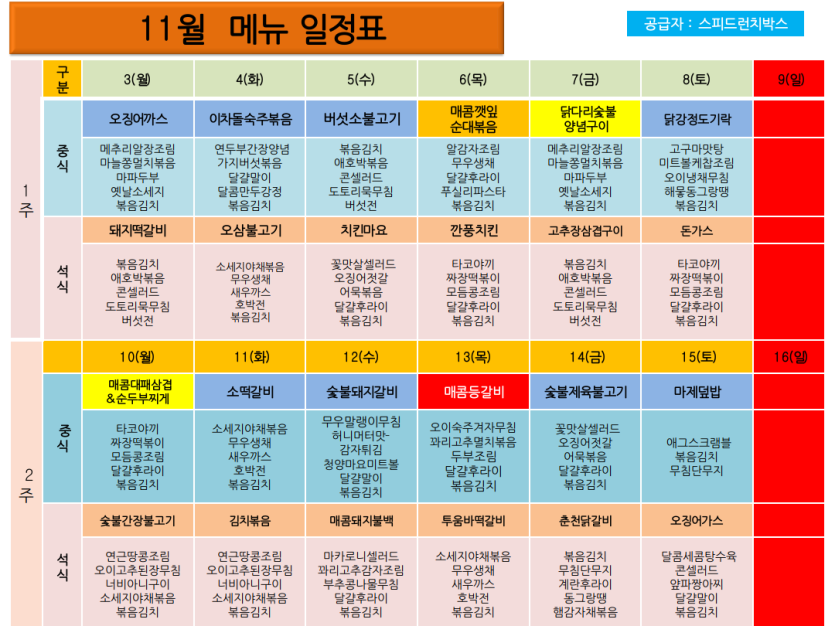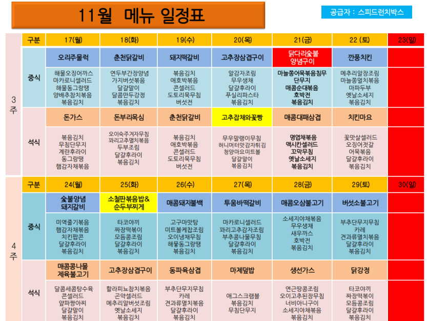 11월 메뉴입니다 > 메뉴안내(다음주메뉴)