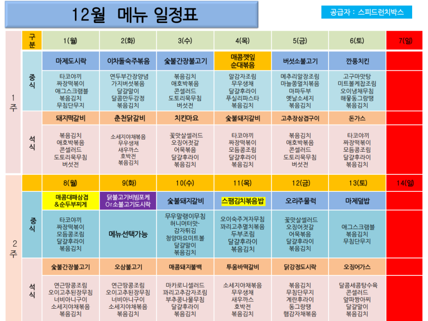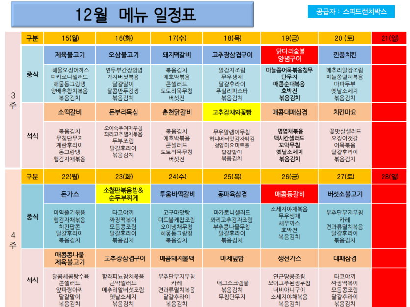 12월 메뉴입니다 > 메뉴안내(다음주메뉴)