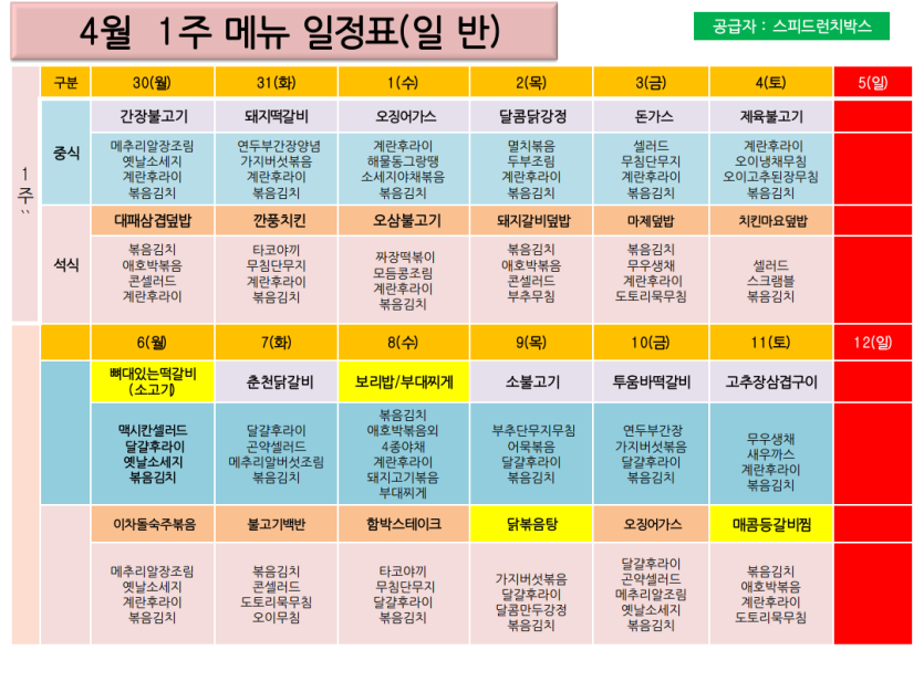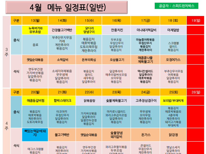 4월 메뉴입니다 > 메뉴안내(다음주메뉴)